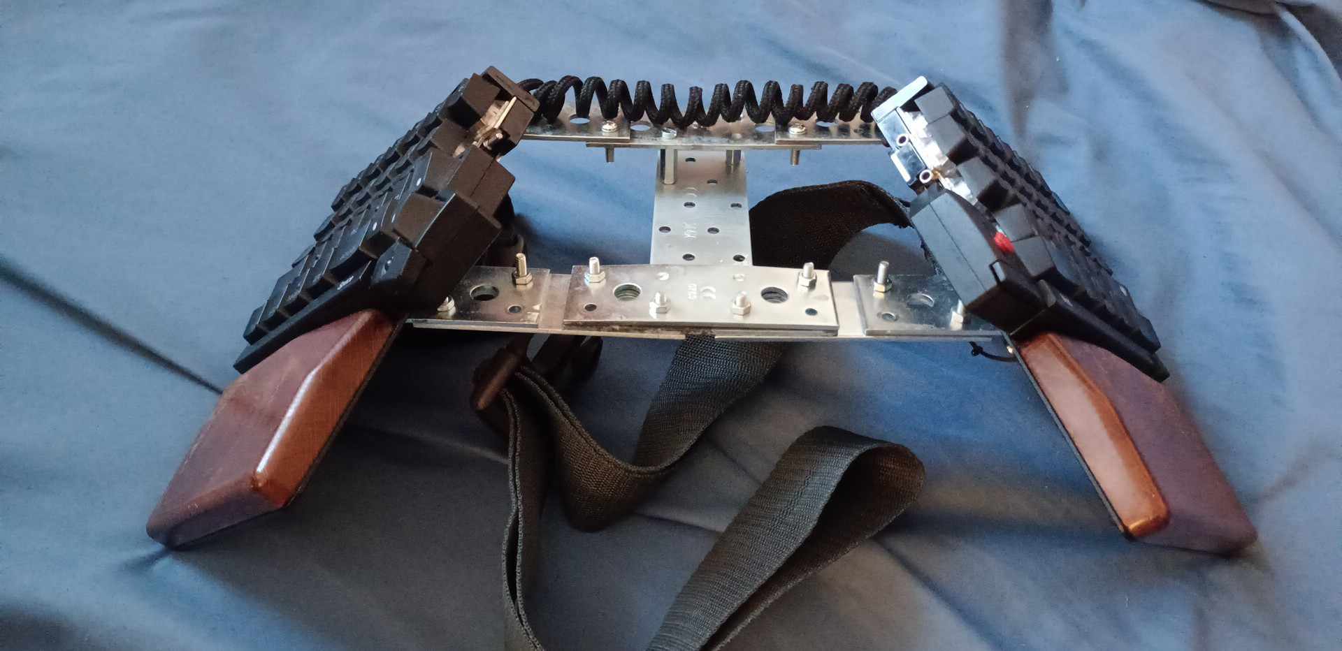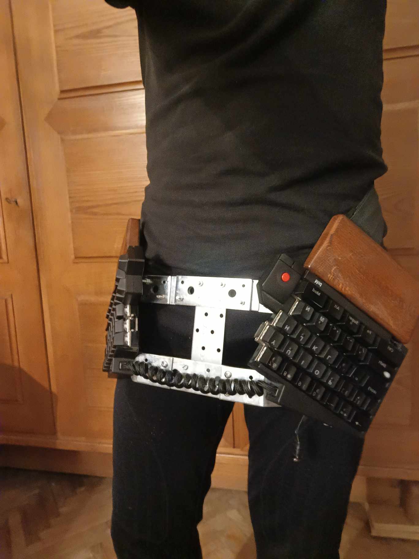 I want to make a belt that will suspend the UHK around my upper thighs. Imagine walking around with the halves strapped to the upper thighs, and with AR glasses, connected to a SBC in the backpack.