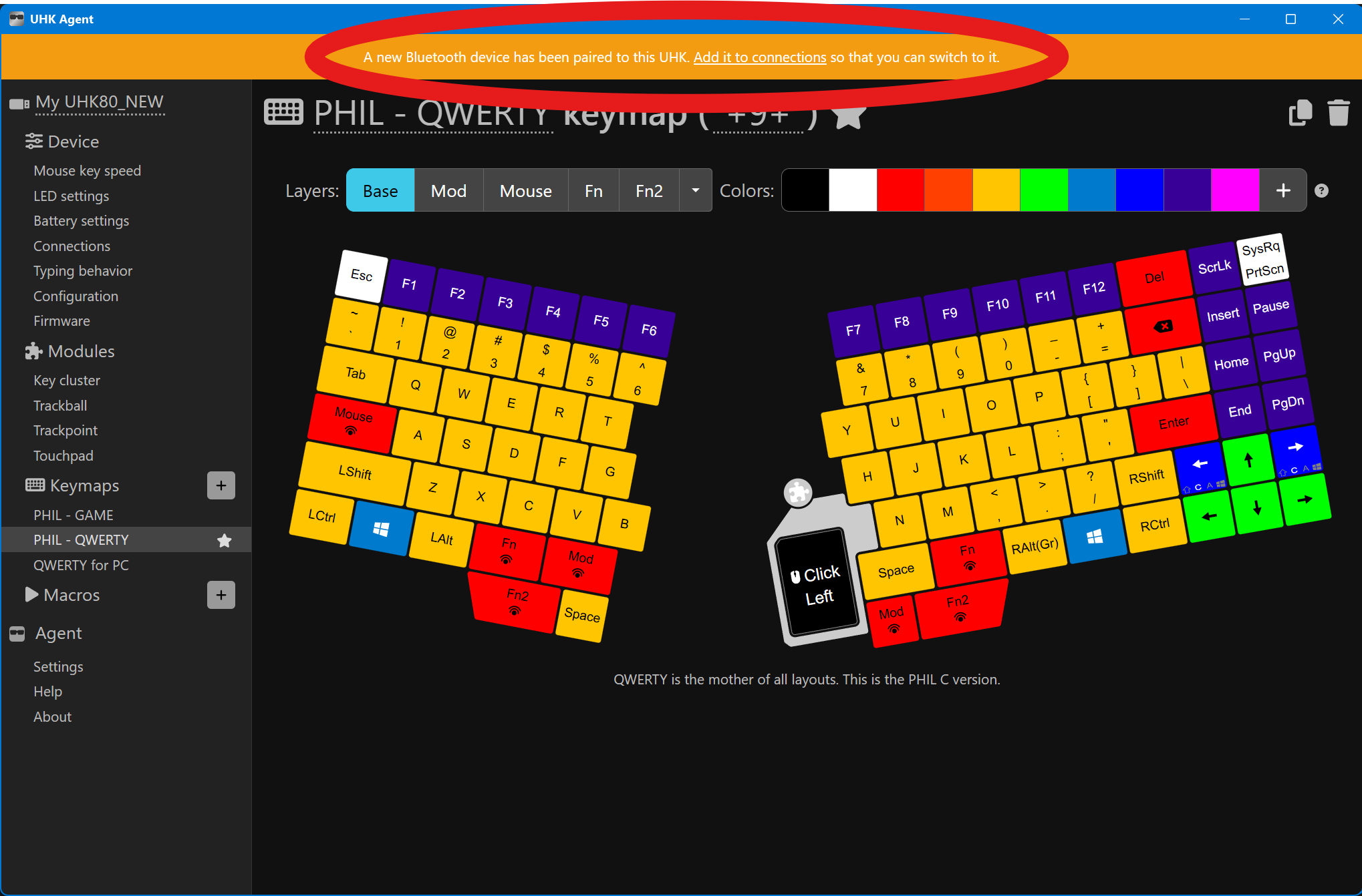 If you pair a device while Agent is open, do you see a yellow banner at the top that says: “A new Bluetooth device has been paired to this UHK. Add it to connections so that you can switch to it.”?