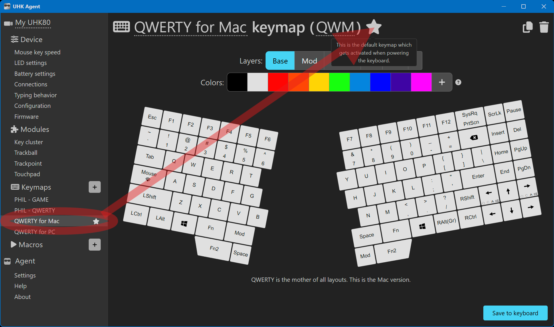 First, select the Keymap in the left panel, and then click the big star in the main central pane.