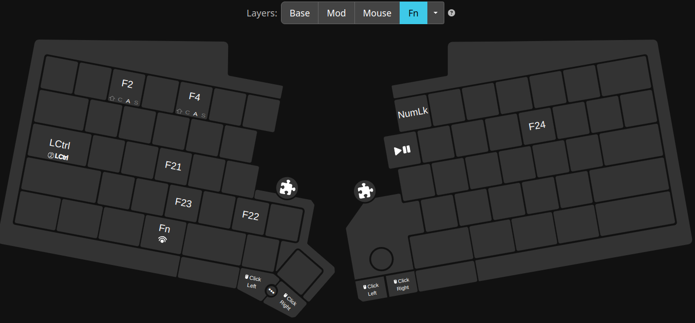 As you can see, I can have a Fn2 layer dedicated to shortcuts like these but it doesn’t matter much if I’m limited at the scancode/keycodes which I can send to the OS. Ctrl-Alt-F13-F24 might work but is just more clutter plus I don’t know how to get that to work in the Kmonad config. Any suggestions guys?