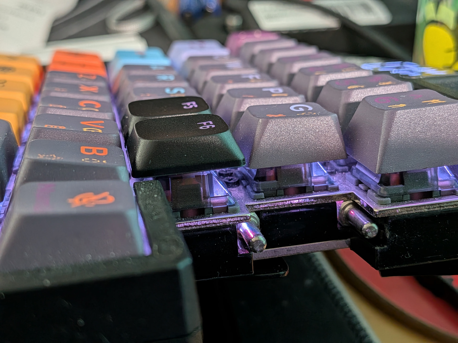 I don’t have LPF caps, but here is a photo of XVX Skyline caps (the black ones) vs. Cherry profile sitting on a UHK60v2. You can see that the flatter XVX caps do not cover the light source as much as the Cherry ones. It’s even more pronounced when you press them.