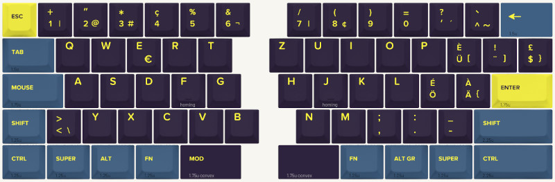 I’ve created a set for the Swiss German layout, which is currently my default layout on the UHK. The colors I’ve selected based on the navy blue UHK case.
