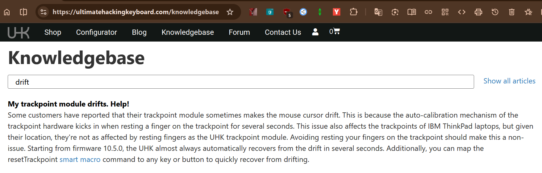 Does anyone in this thread have a long term feedback on your trackpoint? I’m about to switch from trackball to trackpoint. I used to love all the thinkpad nipples but they all have a drifting issue where if you hold the trackpoint in one direction for too long, it will not return to neutral but instead drift for a while until it resets. I’m just worried the UHK trackpoint might have the same issue.