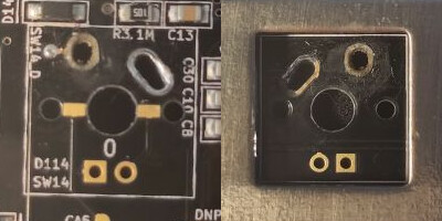 Here’s a photo of the PCB for one of the problematic keys, from both sides: