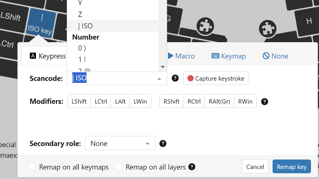 I have tried to capture the key and it selects this