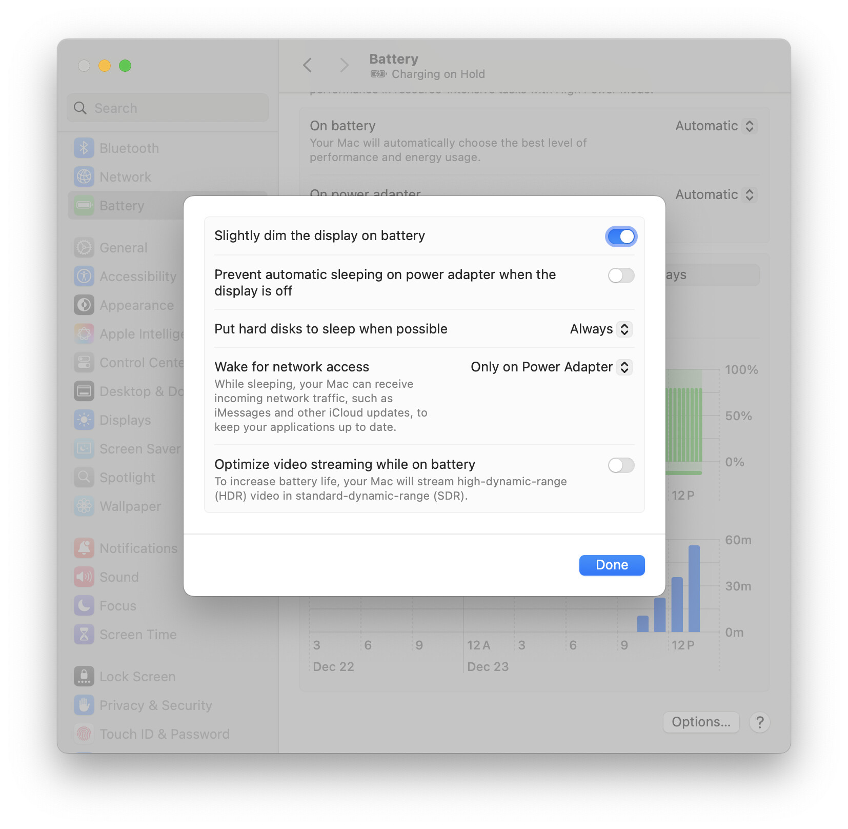 - Set the macos power settings to match the attached screenshot.