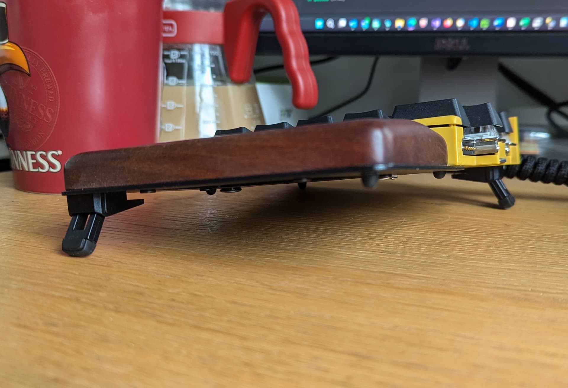 Moving from my Logitech ergonomic keyboard it’s probably what I’m struggling with the most. At the moment I’ve resorted to propping up the 4 front corners with post-it note pads which makes adjusting the position of the keyboard a right faff