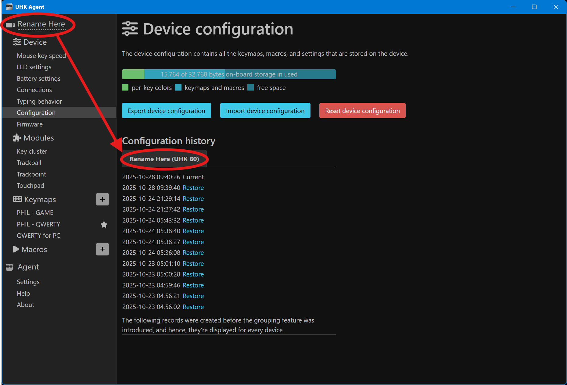 Is there a way to name the keyboards in Agent. Obviously I know which one is my UHK80 but the other ones I struggle with.