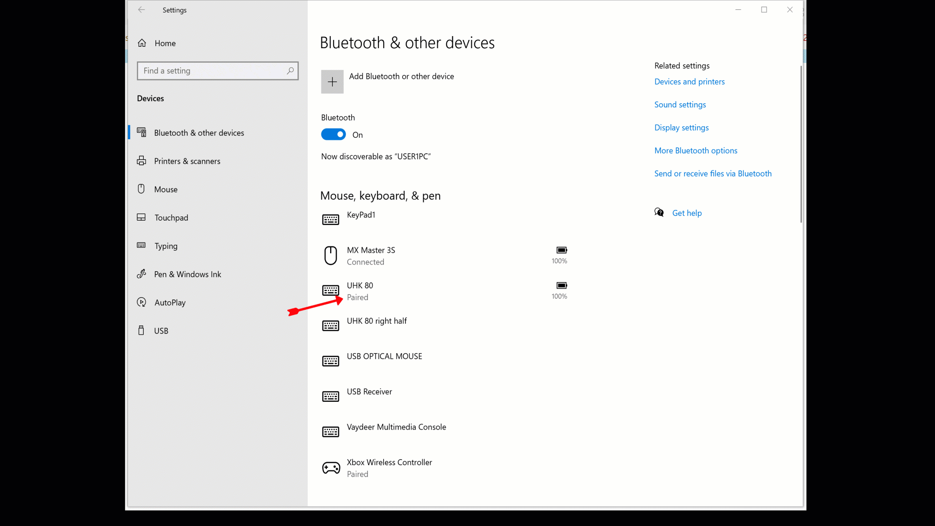 I’m noticing some strange behavior in the Windows Bluetooth panel. The “UHK 80 right half” keeps disappearing and reappearing in the Bluetooth devices list. When this happens, there’s a brief period where I cannot type at all. Also, the “UHK 80” device’s state is constantly change between “Paired” and “Connected”. Here is a 1 minute video to show the issue.