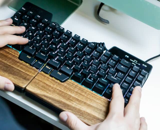 The palm rest of the UHK80 are kind of sticky. With that I mean that dust and small particles cannot be wiped of with the hand, but only with a slightly wet hanky.