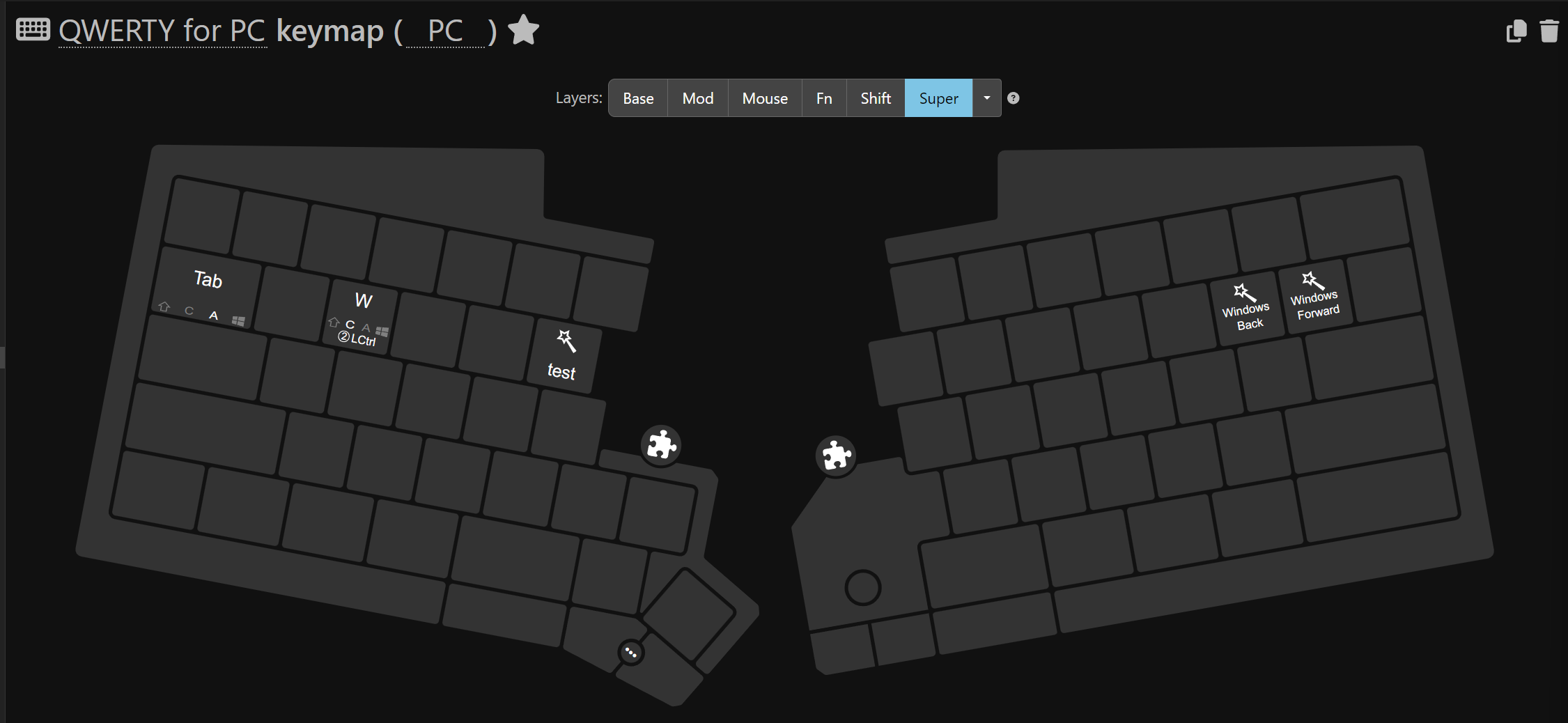 I’ve pasted some screenshots of my Super layer for my QWERTY keymap for Windows
