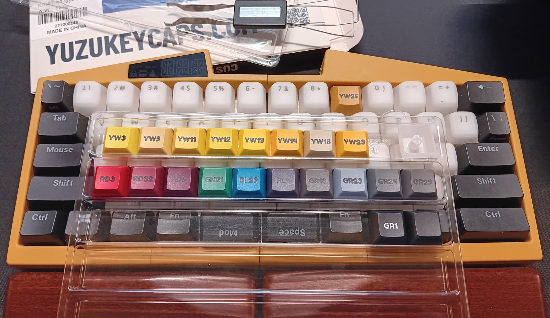 I’ve been trying to match some caps to the yellow UHK60v2 case, and YUZU’s yellow #YW26 comes really close. It’s just a tad darker than the case color, but very complimentary. The color is actually much closer IRL, compared to this pic, BTW.